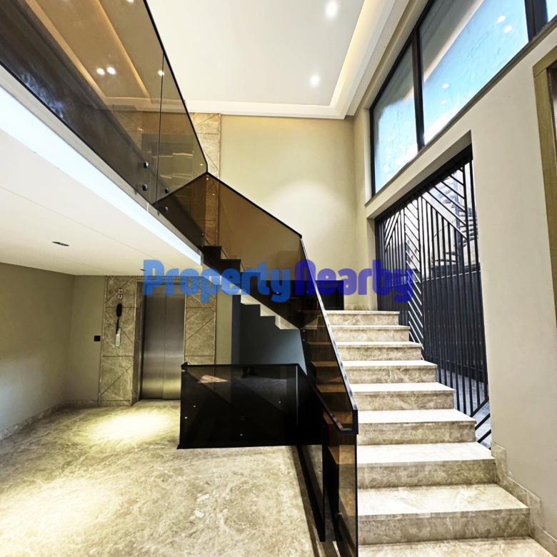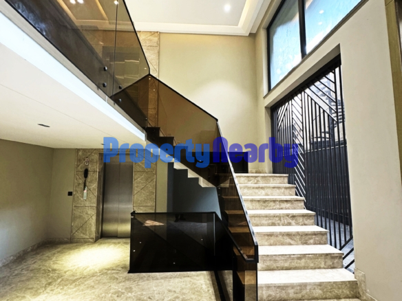 - This spacious Ground & Basement Triplex With Exclusive Lift semi-furnished home offers 4 bedrooms and 5 bathrooms spread across the first floor of a 4-story building, with only one apartment per floor ensuring utmost privacy.